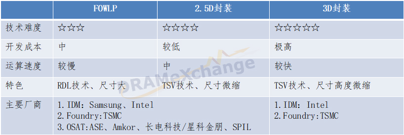 相对而言,国内封装技术领先企业在HPC芯片封装方面采用的FOWLP技术、2.5D封装所能集成的异质芯片种类、数量、bumping密度与国际上领先的3D异质集成技术存在一定的差距,这也将降低产品在频宽、性能、功耗等方面的竞争力。