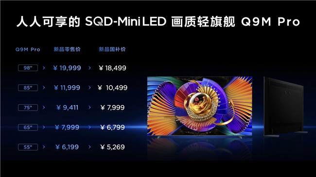 作为本次发布的轻旗舰担当,TCL Q9M Pro最大的跨越在于满血继承了SQD-Mini LED核心技术,将原本只属于机皇的画质体验带入了更广阔的消费市场。