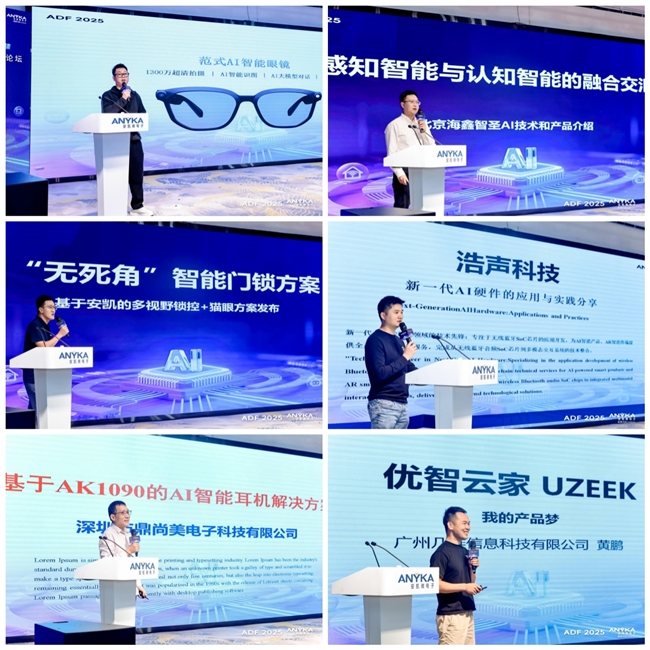 深圳市鼎尚美电子科技有限公司研发总负责人刘平发布了基于安凯微芯片的AI耳机(左下);