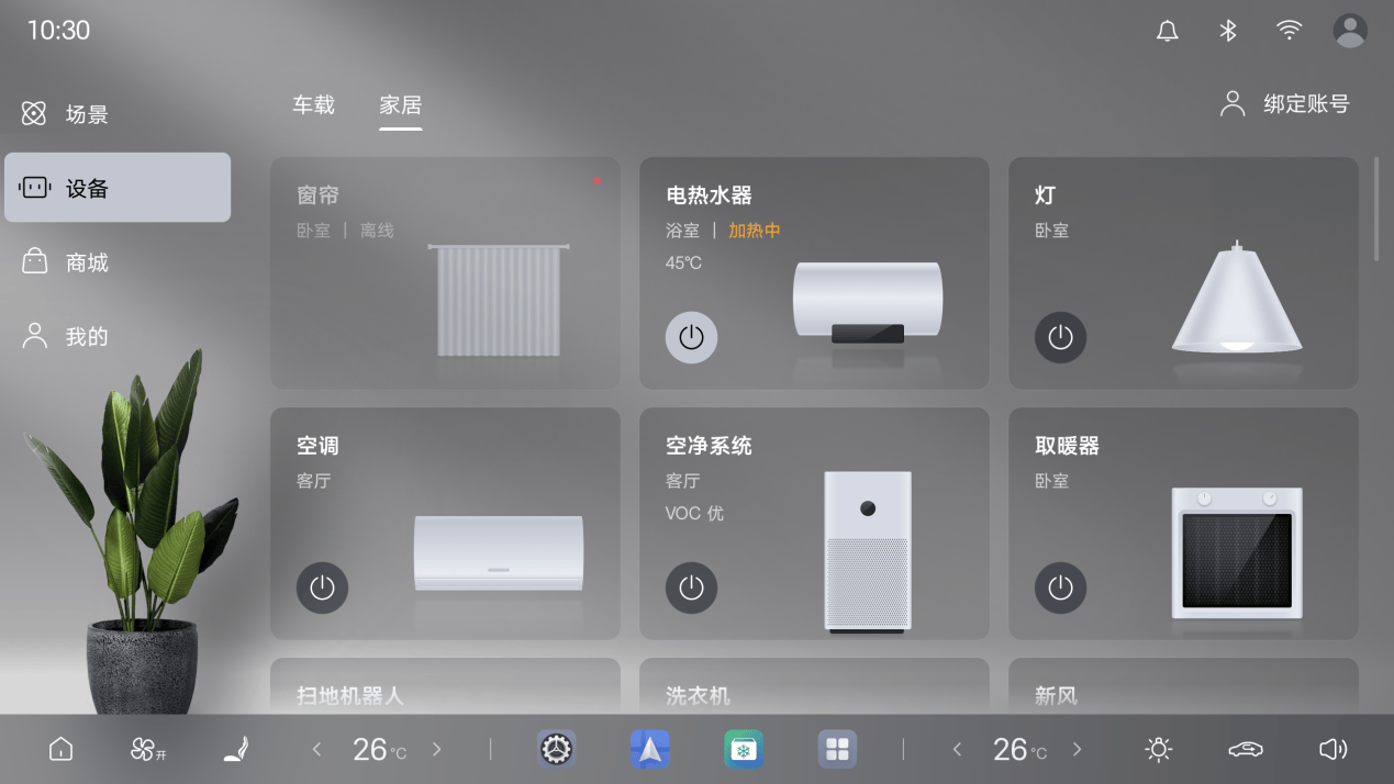 此次升级的一大亮点是新增了车家互联功能,该功能以车辆为核心,与智能家居实现深度联动。用户只需在智慧物联App中绑定美居账号,便可通过车机系统控制家中的空调、灯光、窗帘、电热水器、扫地机器人、取暖器、空气净化器以及新风系统等8类主流美的品牌家电。同时,该功能还支持通过美居App的家居场景一键备车,真正实现了人、车、家的无缝衔接,为用户打造更加便捷的智慧生活体验。