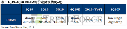 在中国DRAM产业发展上,虽然合肥长鑫已宣布将于年底正式导入量产,但初期产能规划仍非常保守,预估真正放量最快也要到明年年末,且中国DRAM产业整体良率提升需要一段时间的学习曲线,对于2020年整体DRAM产业的位元供给成长贡献有限。