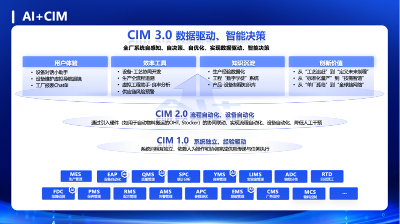 一直以来,格创东智将半导体行业作为战略深耕领域,并基于“AI+CIM+AMHS”软硬融合工业智能解决方案,助力半导体行业实现“高节拍、零缺陷”的生产目标。在AI赋能软实力层面,杨丽现场揭开了工业AI驱动半导体CIM进化路径,即半导体CIM正从“经验驱动”向“数据驱动+AI协同”的转型,依赖大模型智能体与企业级数据、业务流程和系统工具深度融合来加速下一代CIM的到来。